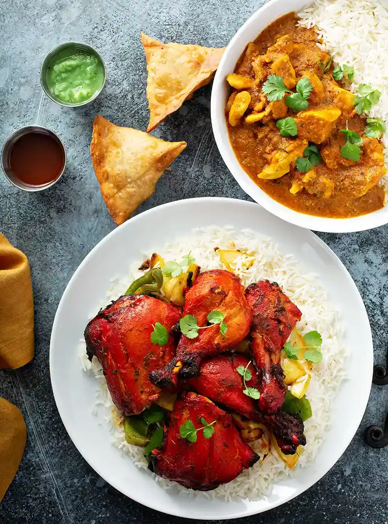 Chicken bone-in whole thigh meat seasoned tandoori spices